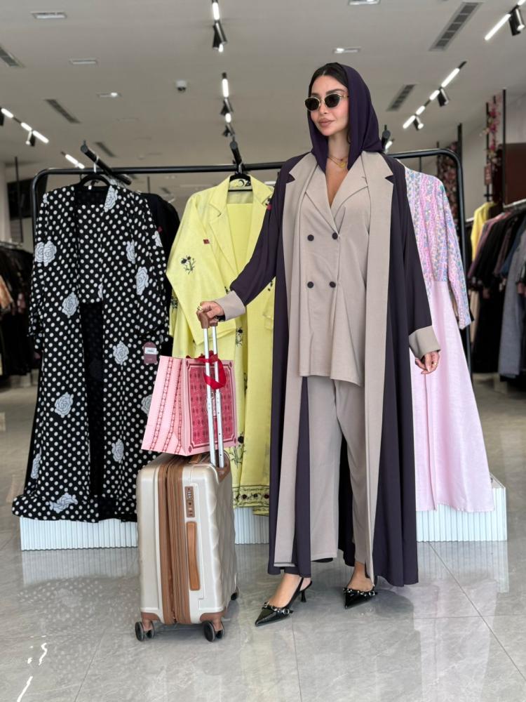 طقم عباية مكون من ثلاث قطع مصنوع من حرير البارنو
