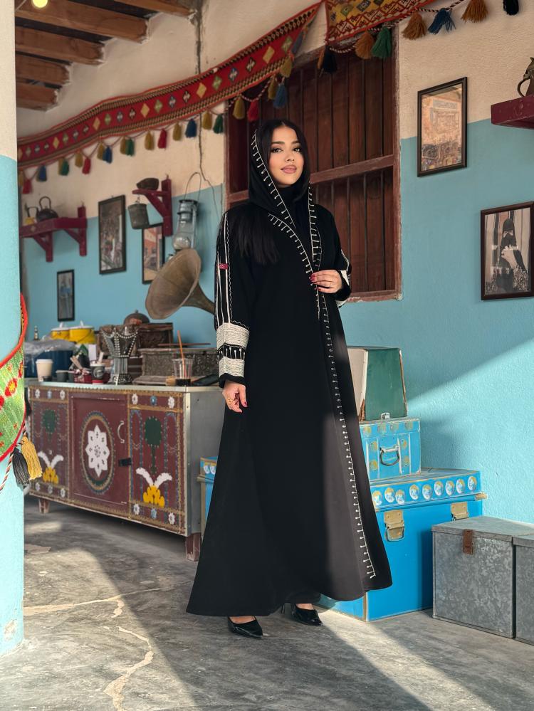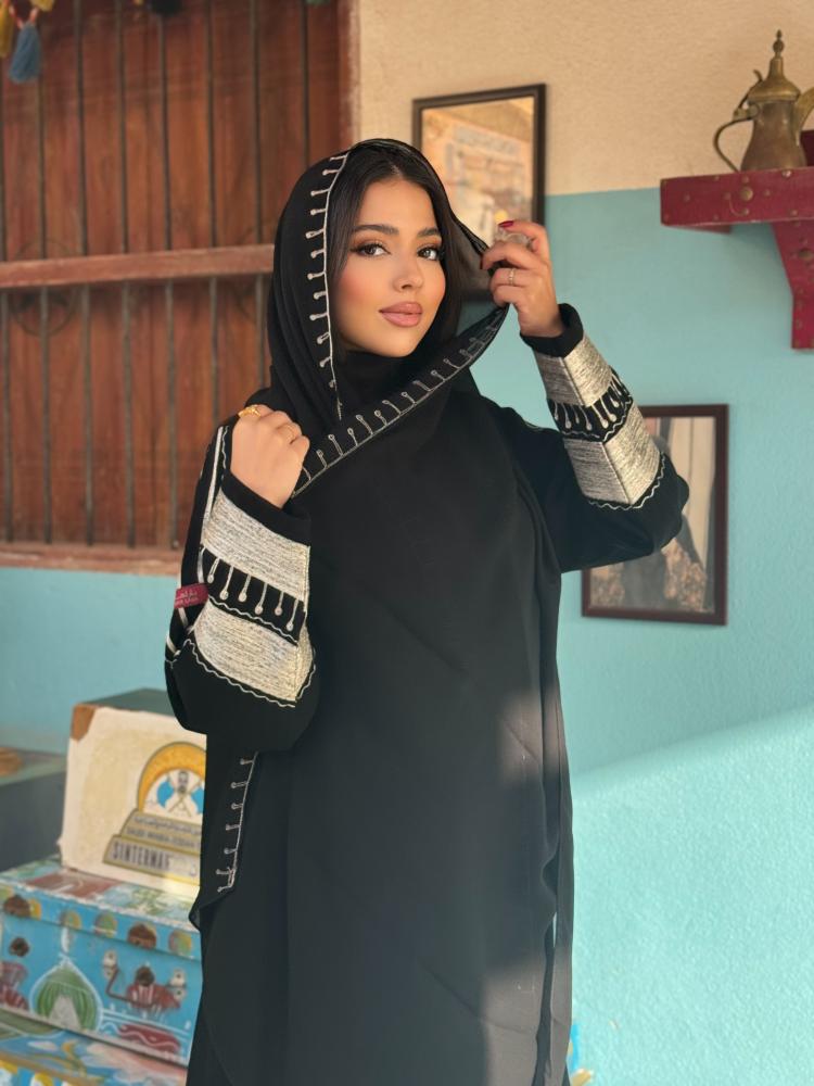 وصف المنتج : تتميز العباية بتصميمها المستوحى من تراث المملكه العريق مع لمسات حديثة تعكس روح يوم التاسيس وتبرز هويتك الوطنية مصنوعه من القماش الكوري الفاخر لمسة من الرقي قماش ملكي تتميز بقصتها النصف كلوش وتتميز بكلف مطرزه باللون الفضي بالاكمام وفي مقدمة العباية