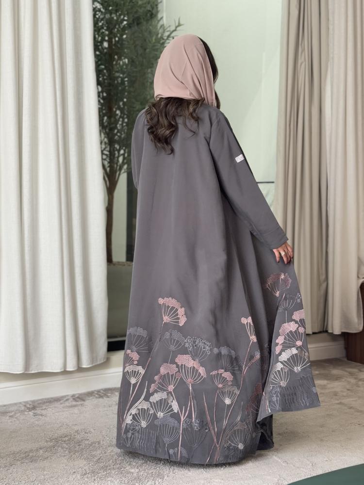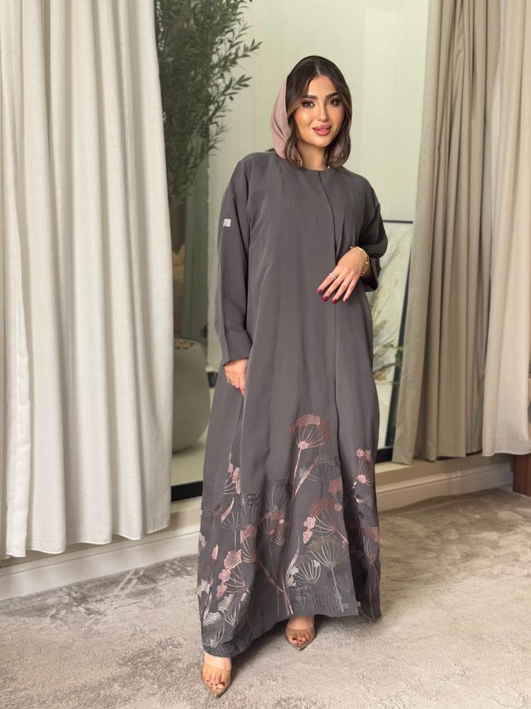وصف المنتج : صممت هذه العباية من قماش حرير لتكون اكثر من مجرد قطعة ملابس بل هي تحفه فنيه تجسد الاناقة والرقي بقصة نصف كلوش تتمبز هذه العباية بتطريز اسفل العباية بالوان مختلفة وباشكال اغصان مختلف مايزيد جمال العباية وتاثيرها الجذاب لموديلها العصري والحديث
