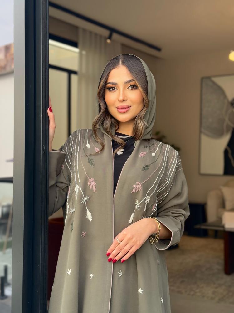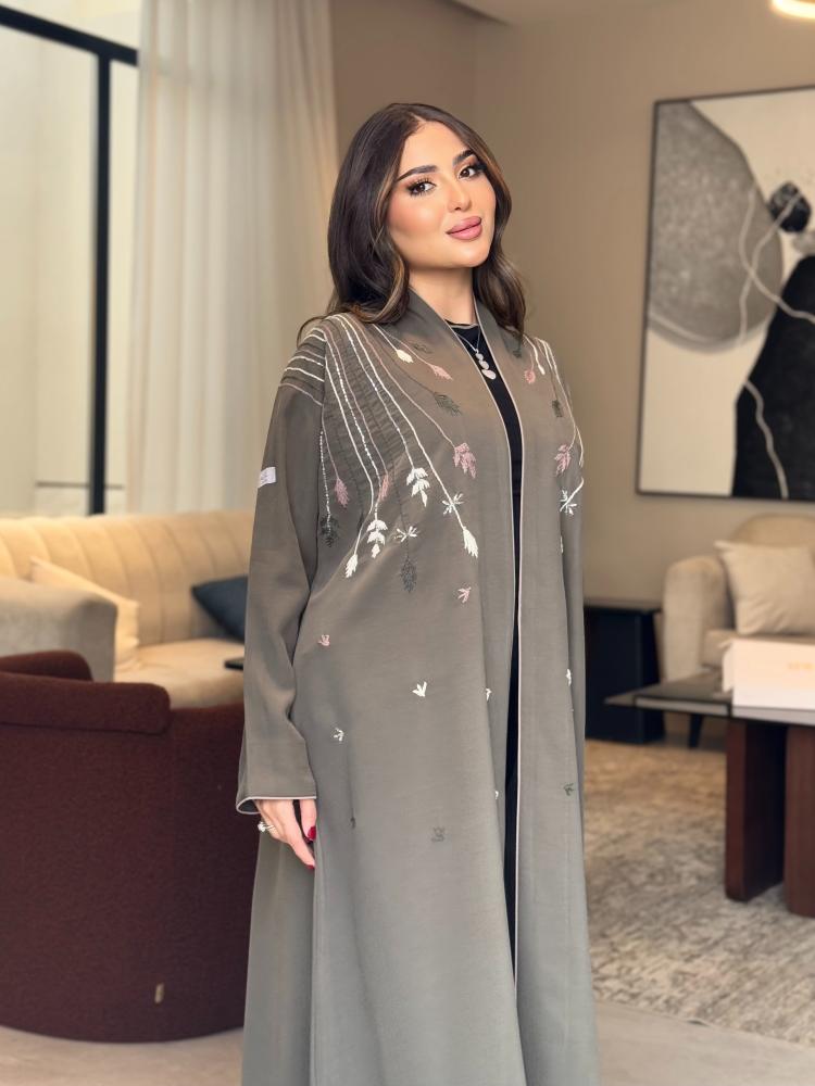 * لون العباية /رمادي مطرز