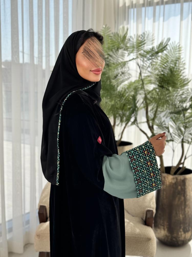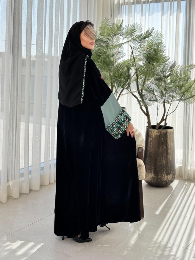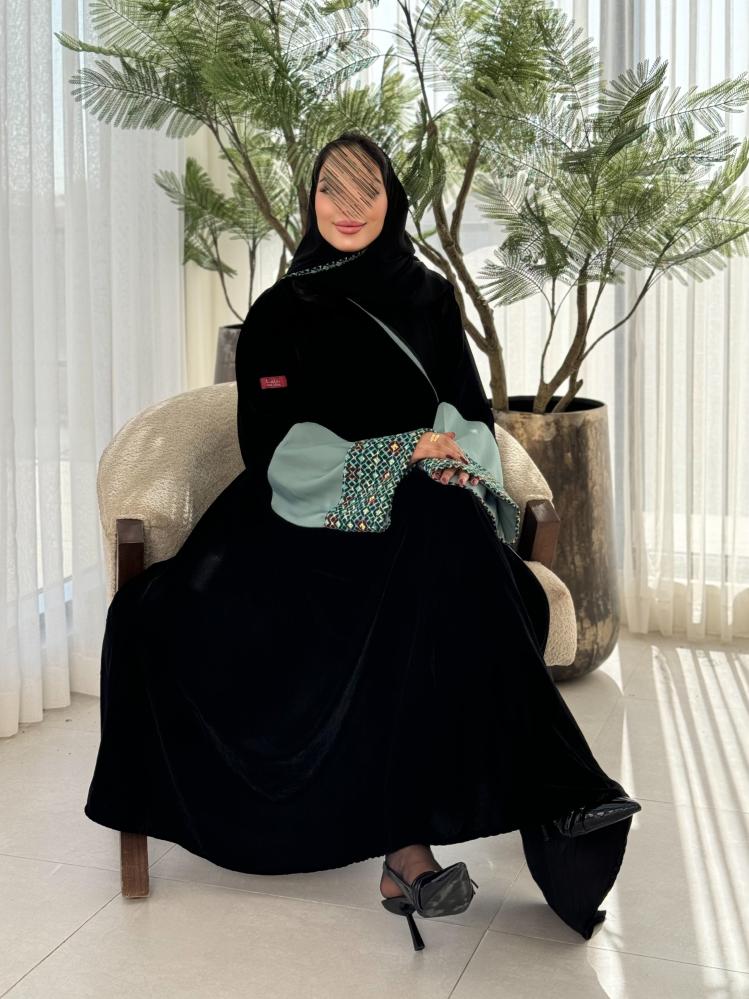 وصف المنتج : عباية شتوية فاخره مصنوعه من قماش المخمل تتدفق بشكل جميل حول جسمك