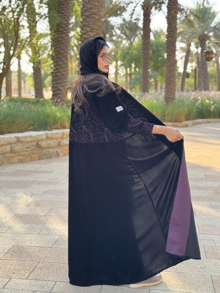 صف المنتج : عباية مصنوعة من قماش المخمل مع تدخيلات مطرزة مما يعطي العباية جمال واناقة حيث ان تطريز العباية يعطيها رونق وجمال