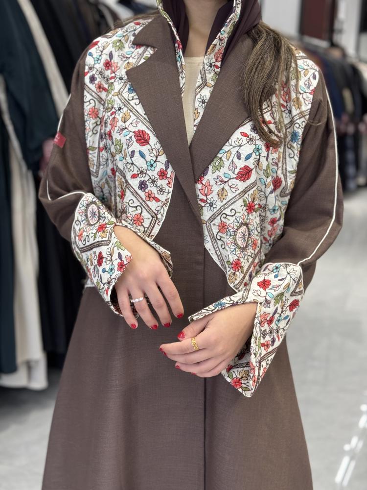 وصف العباية : عباية أنيقة بتصميم عصري: تتميز هذه العباية بقصتها النصف كلوش بليزر بقماش لنن وباضافات مطرزه وجذابة على الصدر والاكمام بالوان متعددة وذلك يجعلها تزهو بجمال منظرها اثناء اللبس