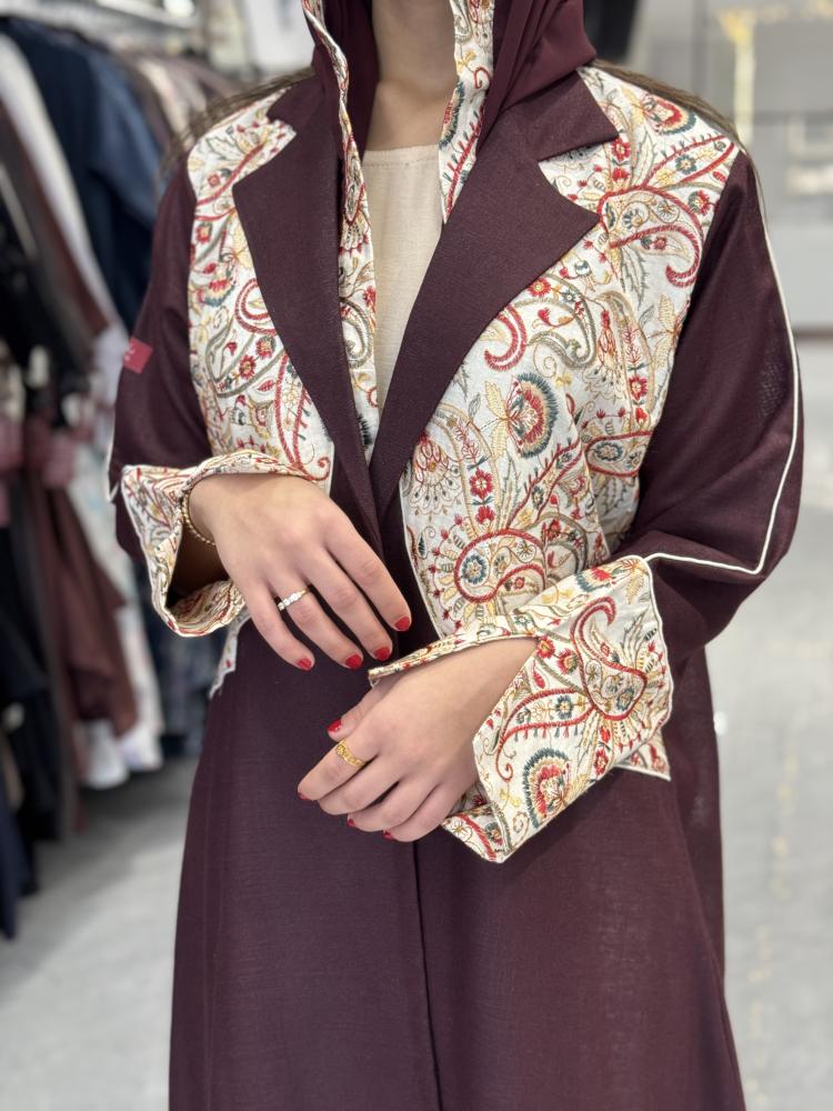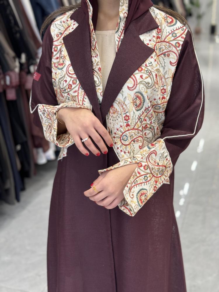 وصف العباية : عباية أنيقة بتصميم عصري: تتميز هذه العباية بقصتها النصف كلوش بليزر بقماش لنن وباضافات مطرزه وجذابة على الصدر والاكمام بالوان متعددة وذلك يجعلها تزهو بجمال منظرها اثناء اللبس