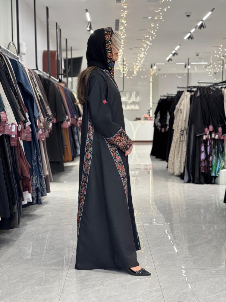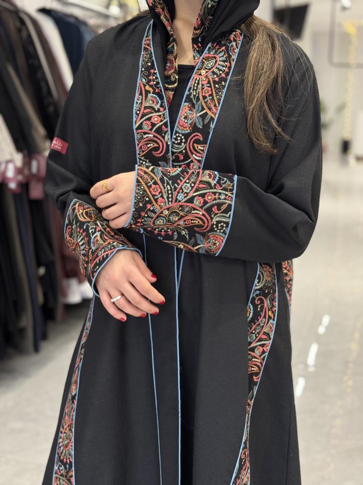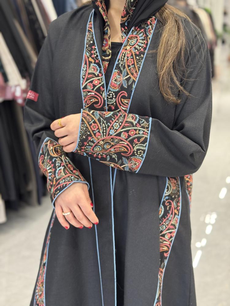 وصف العباية : عباية أنيقة بتصميم عصري: تتميز هذه العباية بقصتها النصف كلوش بقماش لنن وباضافات مطرزه وجذابة من جهة الصدر من الامام والخلف وذلك يجعلها تزهو بجمال منظرها اثناء اللبس