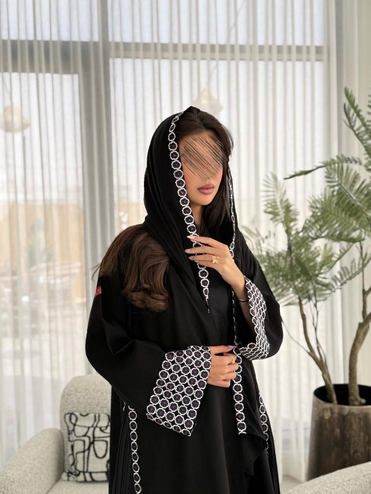 عباية صيفيه بقماش كتان كسرات مطرزة