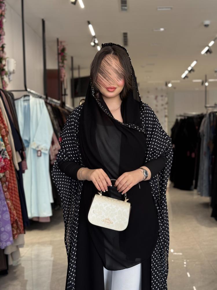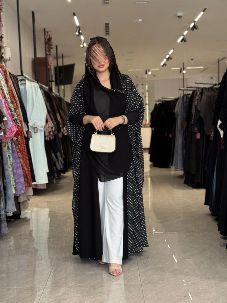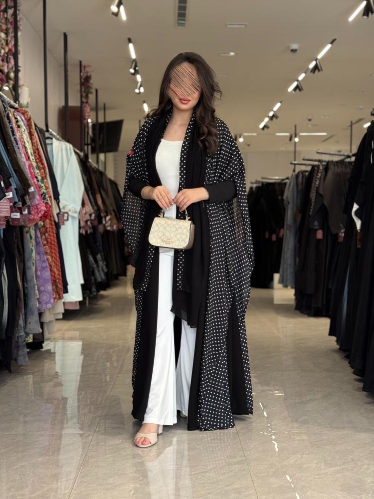 عباية نصف بشت بقماش ملكي وشيفون منقط– فخامة تتحدث