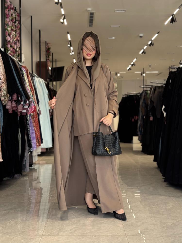 تميّزي بإطلالة عصرية وفاخرة مع هذا الطقم المميز المكون من عباية وبنطلون وبلوزة، بتصميم متكامل يجمع بين الأناقة والراحة.