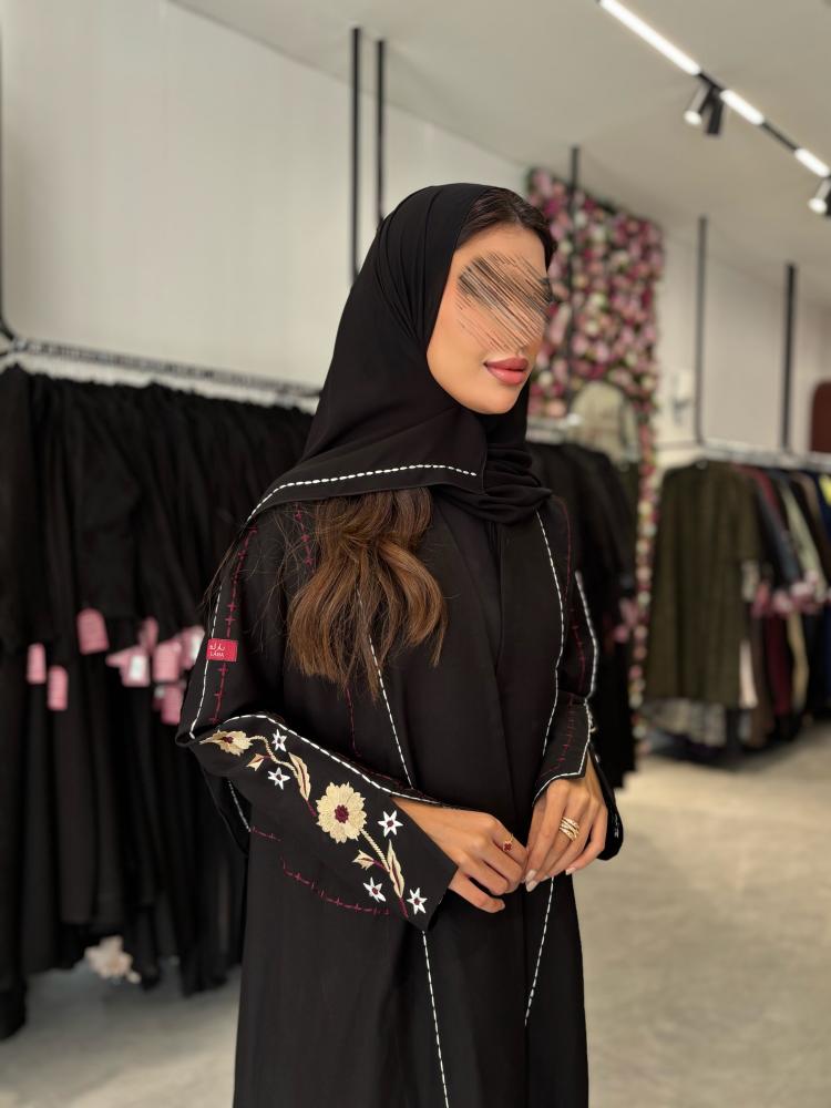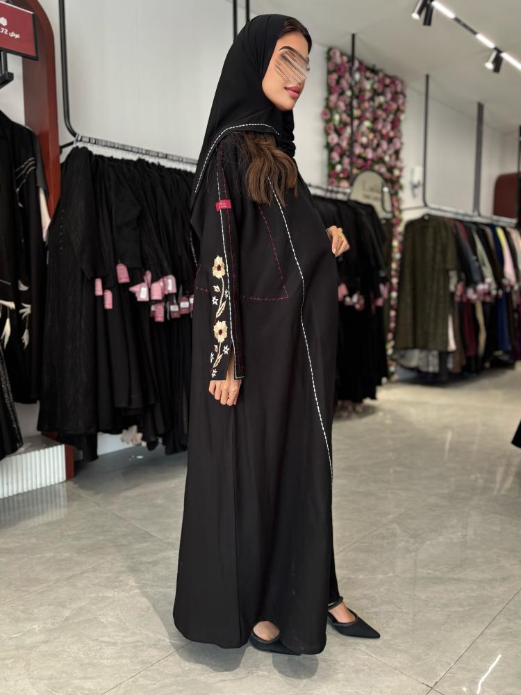 * لون العباية / اسود بتطريز اكمام بيج