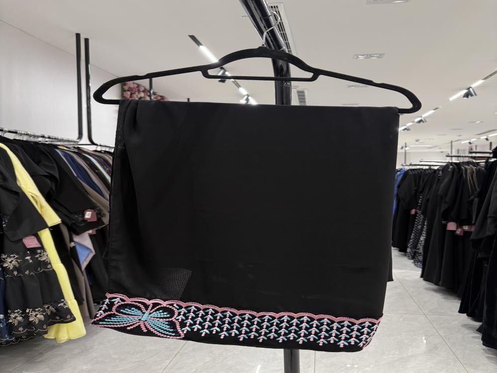 * لون العباية / اسود مع تطريز وردي بتيفاني