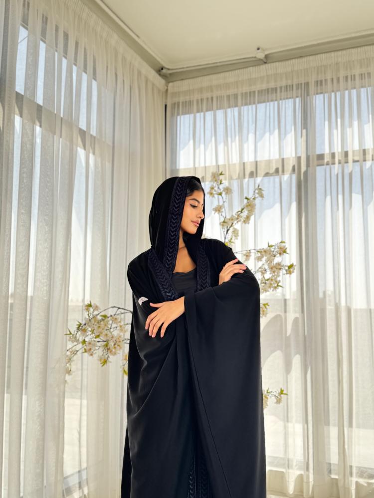 * لون العباية / اسود مع كلفة مطرزة كحلي