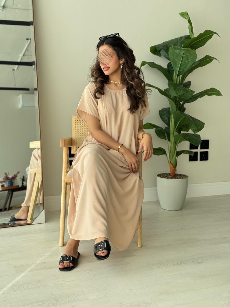*فستان مصنوع من قماش اللنن التي تتناسب بنعومة علي البشرة يتميز الفستان بخياطة عالية الكفائة والدقة التي تمنحك الاستخدام المثالي