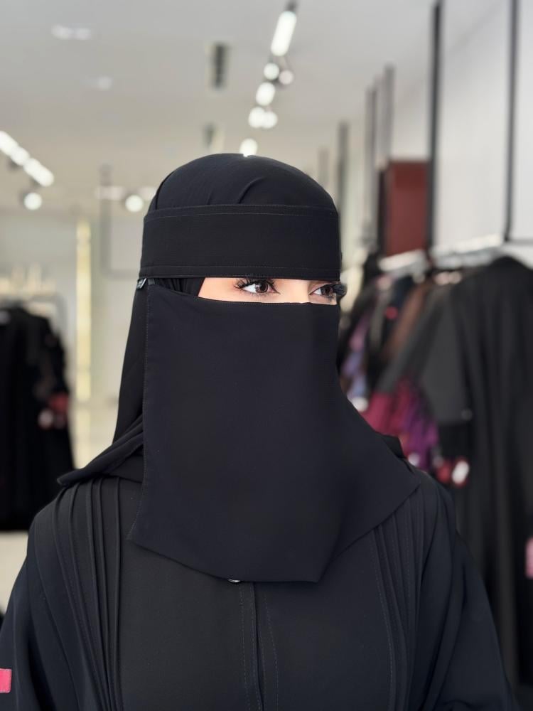نقاب بقماش كوري مقوى خط عادي وسط يمتاز بتصميم انيق وجذاب يمنحك الشعور بالراحة عند ارتدائة لفترات طويلة جودة وثبات باللون الاسود الجذاب
