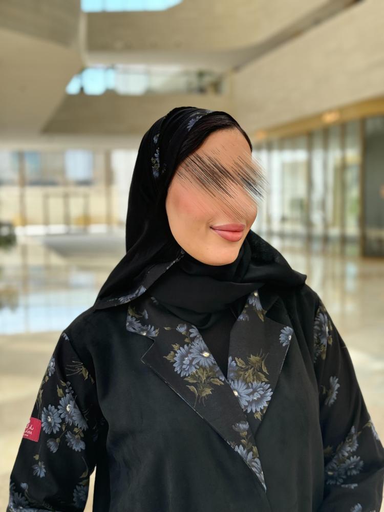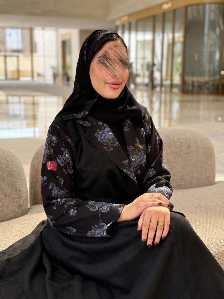 * لون العباية / اسود اكمام طبعات سماوي