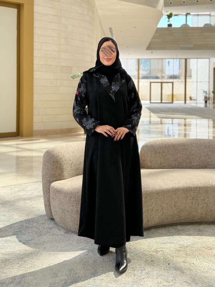 وصف المنتج : عباية شتوي مصنوعه من قماش الشامواه باكمام لنن طبعات