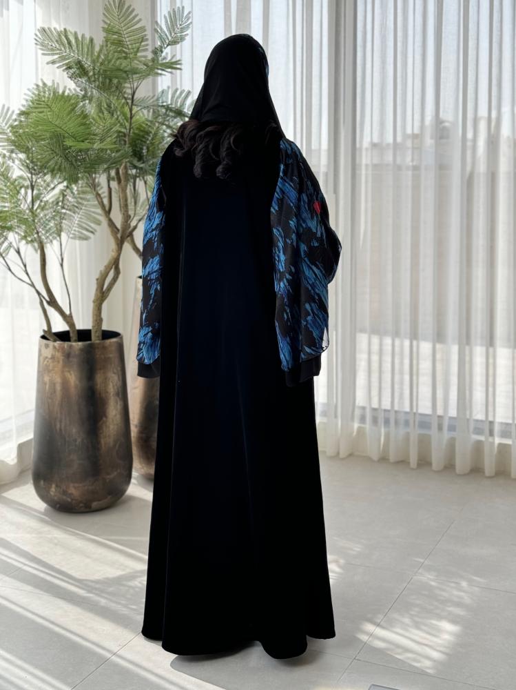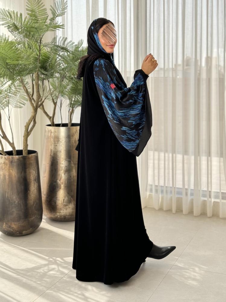 وصف المنتج : عباية شتوية فاخره مصنوعه من قماش المخمل تتدفق بشكل جميل حول جسمك واكمام الكلوش الراهية المريحة
