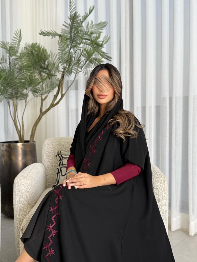 عباية قماش انترنت مطرزة من الامام